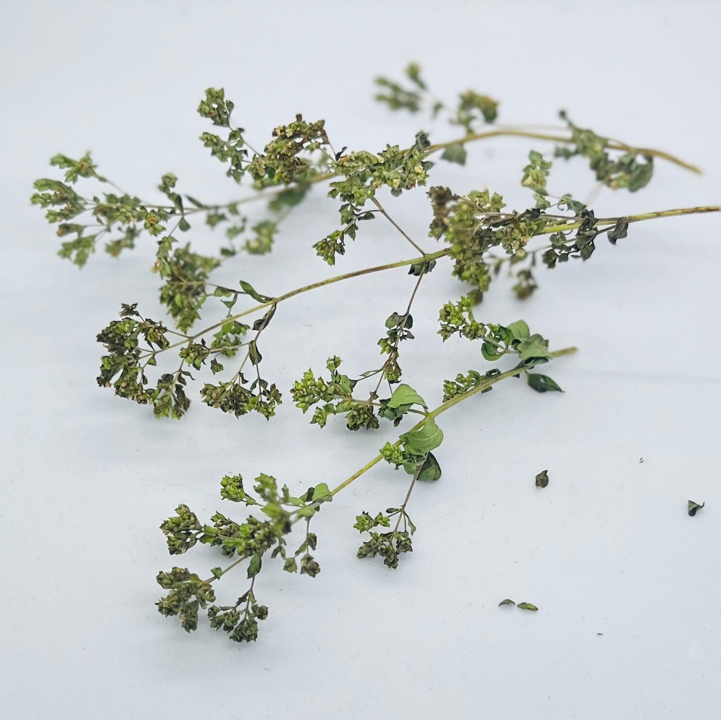 オレガノの花はグリーン色が強く、小さな白い花が咲いて,とてもかわいいです。